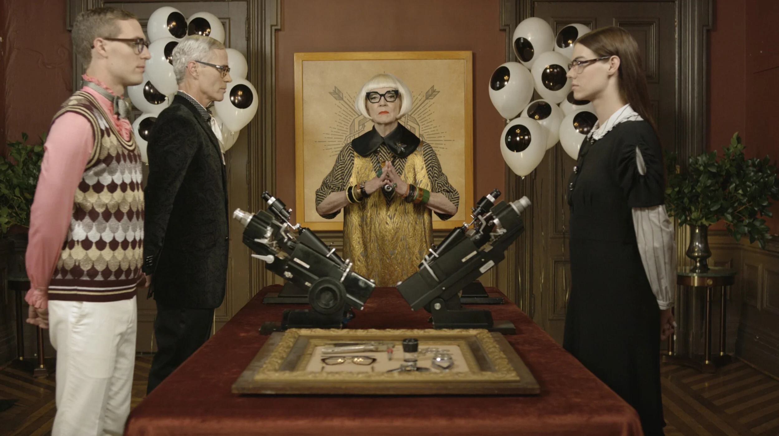 “The Eye Ball” is the sequel to “Our Family Know Glasses”, and continues the true-ish story of the Voorthuis family, optically-obsessed owners of Georgetown Optician. Like the original film “The Eye Ball” was conceived and created by Design Army, who hatched a wild tale involving a short sighted optical instruments heiress, villainous butler, purloined heirlooms, and a cast of 50 hunting hounds. Highly stylized and told through a fashion lens, the story begins with an invitation to “The Eye Ball” from Grandma Ida. The family arrives at Ida’s Gothic mansion and are surprised (not in a good way) to meet Ida’s overly accommodating butler, Igor. Turns out “The Eye Ball” is less a ball than pretext for the family to polish their skills at the altar of their idol, and to view their most precious heirloom, the first glasses Ida ever made. Shriek, horror! The glasses get pilfered in the night, and in a classic case of “butler profiling” Igor becomes suspect number 1. But if The Butler didn’t do it, whodunnit?